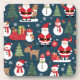 Design de Natal com boneco de neve, veados, árvores de natal e Papai Noel.