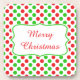 Design de Natal vermelho e bolinhas verde. Padrão de bolinhas vermelhas e verdes. Uma forma branca no meio com o texto "Feliz Natal".