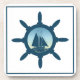 Design náutica com barco à vela e decoração das rodas em fundo branco