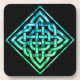 Um conjunto de portas copos de plástico duro com rolha para trás com uma design azul-esverdeada do nó celta contra um fundo preto.