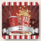 Petiscos clássicos do filme da pipoca e do refresco envolvidos com o filme que indica o texto "noite de cinema". A parte superior e a indicação inferior o teste padrão listrado vermelho e branco na caixa da pipoca.