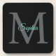 Porta-copo Nome do Script Teal, Monograma de Cinza Grande em
