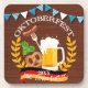 Festival de cerveja Oktoberfest com caneca de cerveja, pretzel, salsicha, faixa de fita com as cores da bandeira alemã, e bandeiras bávaras no topo para celebrar Oktoberfest no outono.