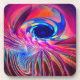 Uma imagem fractal rotacional brilhante, multicolorida (vermelha, púrpura, azul).