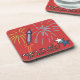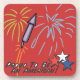 Este design apresenta três estrelas em vermelho, azul e branco. "orgulhoso de ser americano" está impresso nesta design. Um foguete com fogos de artifício coloridos está a explodir pelos céus. Esta imagem está disponível com um fundo branco, vermelho ou azul. Portas copos quadradas ou redondas estão disponíveis.