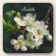 Protect your surfaces with the dramatic elegance of Dark Botanical Art. This premium coaster features an exclusive, authentic macro photograph of delicate white plum blossoms glowing with luminous light against a deep, sophisticated dark background.