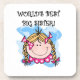 Caixas, azulejos, ornamentos, cadernos, travesseiros decorativos, canecas, mugetes, sacos de tote, cartas e mais, bonitos e coloridos, com uma menina loira cabeleira em tranças e texto preto que diz "A Melhor Irmã do Mundo"!