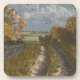 Uma pista de campo atravessa as árvores, resplandecendo em sua finaria de outono como folhas caídas espirrando na brisa suave neste trabalho de arte digital original criado em Vue pelo artista Jayne Wilson.