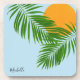 Essa porta copos apresenta uma elegante design minimalista com um sol tropical atrás de folhas de palma sobre fundo azul-céu. Personalize adicionando seu nome em uma fonte elegante e caprichosa.