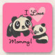 Um urso de panda das mamães e do bebê projeta com um fundo e um texto cor-de-rosa e uns corações e um texto que leia mamães do amor de I em t-shirt, bodysuits, canecas, cartões, etiquetas, as bolsas, ímãs, e um mais brancos.