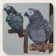 Quem é aquele no espelho? Papagaio-Cinza africano olhando para si mesmo no reflexo.