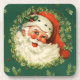 Este Papai Noel de Jolly tem sua cabeça cercada por galhos de pínus que formam uma coroa. Há um pequeno pedaço de gorro no chapéu de Papai noel. Imagem de um Livro de exemplo de papel de enrolamento de Natais vintages, cira 1954.