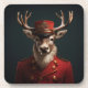Retrato de uma rena em uma fantasia oficial vermelha que ele provavelmente está trabalhando para o Papai Noel. Feliz Natal a todos vocês