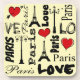 Design de texto de Paris para Dia de os namorados com formas vermelhas de coração, Torre Eiffel e decoração de lâmpadas de rua em fundo amarelo
