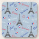 Ilustração perfeita do design de texto de Paris com Torre Eiffel, formas cardíacas tricolor e decoração de bandeira francesa sobre fundo azul para Dia de os namorados