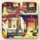 Esta é uma bela porta copos quadrada apresentando a varanda dianteira da casa no outono.