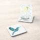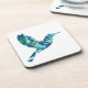 Pássaro em voo composto de formas geométricas em tons de azul, ciano, turquesa e verde.