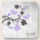 Proteja as superfícies de toalhas ou móveis com uma Porta copos de plástico personalizada de pássaros roxos. A porta copos de design apresenta um par de pombinhos adornados com uma vinha floral e uma área que você pode personalizar com seu nome. Itens de presentes adicionais disponíveis com este design, bem como uma variedade de cores.