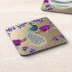 Um pavão colorido é empoleirado num galho adornado com flores vibrantes. O fundo apresenta um tom dourado com detalhes texturizados, melhorando a elegância geral da cena.