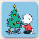 Check out this super cute Peanuts Christmas holiday design featuring Charlie Brown hanging lights on the Christmas tree.