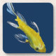 A partir de uma pintura original em aquarela, de Sacha Grossel, de um koi japonês amarelo, pintado em forma livre, estilo pincel asiático. Esse travesseiro decorativo e ornamental pode ser colocado sobre um fundo personalizado - é mostrado aqui na cor tradicional azul marinho japonesa. Good Feng Shui - Este acessório de cozinha ao estilo japonês é para koi e peixes e amantes de arte japoneses em todos os lugares