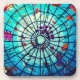 Uma bela representação da vida marinha, da flora e da fauna em vidro manchado. Apresenta golfinhos, uma variedade de peixes tropicais e plantas oceânicas. Em cores de turquesa, azul, verde, rosa, roxo e laranja.