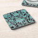 impressão de flor de pénia bonito em turquesa e preto com design de folha escrolly. Derivado de um padrão antigo de vaso.
