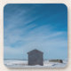 Caixilho, fotografia pequeno cabane na neve com gaiolas de lagostas. Título: “Cabane do pescador”, Iles-de-la-Madeleine, Quebeque, Canadá. Marie-Ève LaBadie fotógrafo