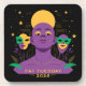 A bold and symbolic Mardi Gras illustration featuring a powerful central figure surrounded by colorful carnival masks. Inspired by themes of identity, mystery, and transformation, this artwork blends vibrant purple, gold, and green tones with a modern flat illustration style. Perfect for Mardi Gras celebrations, carnival posters, festival promotions, editorial illustrations, art prints, and cultural event designs.