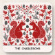 Two red squirrels in a forest of acorns, oak leaves, pine cones and berries. Original art by Nic Squirrell. Change the name to personalize.