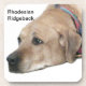 Porta copos de cortiça com uma fotografia de um cão Ridgeback rodesiano. Essa beleza de 90 libras não estava muito feliz com uma câmera presa em seu rosto enquanto ela estava no chão da sala.