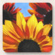 Este conjunto de portas copos de cortiça trará brilho e alegria a sua vida! Três girassóis brilhantemente coloridos são iluminados pela luz solar que flui através das pétalas. As flores exibem uma bela paleta de ouro, amarelo, laranja, vermelho e marrom. O céu azul completa este padrão abstrato de cor e forma.