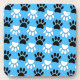 Um padrão em preto e branco de estampas de pata de cachorro com efeitos aflitos em um fundo azul. Estilo de desenho animado design original