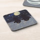 Você gosta de portas copos bonitas? Você é fã de pinguins? Uma pintura escaneada de dois pinguins adoráveis segurando as mãos em uma noite de neve debaixo de uma lua de cheio em um conjunto de portas copos de cortiça