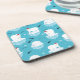 Playful polar bears in Santa hats float on icy blue seas surrounded by igloos, fish, and snowflakes. A cool Christmas favorite.