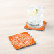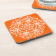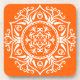 Esta mandala branca senta-se sobre um fundo laranja brilhante. A cor é brilhante e criativa. Parte da Coleção Rosenn Mandala. Este design pode não ser impressão tão brilhante quanto aparece on-line.
