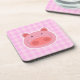 Ilustração de um personagem porquino giro sobre um fundo de piquenique cor-de-rosa