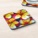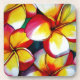 com design de arte original de pintura aquosa de Sacha Grossel de flores tropicais cor-de-rosa, amarelas e brancas de frangipani em foco próximo, estilo macro. Este brilhante, colorido design floral botânico lembra o verão, a cultura do surf, o calor e a proximidade da praia.