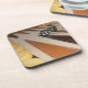 Fotografia recortada de um conselho de gamão castanho, laranja e bronzeado com verificadores e dados.