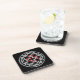 Um conjunto de portas copos plásticas com um nó celta design com uma cruz quadrada vermelha no centro.