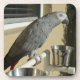 Um papagaio-Cinza-africano do Congo a desfrutar do sol no seu assoalho portátil de aves.