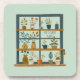 Uma planta bonita amada porta copos com uma bela design de plantas puxadas à mão, sentadas numa prateleira de vitrine. As palavras "cera sobre plantas" são escritas numa das prateleiras, que pode ser alterada, se preferido, clicando no botão "personalizar". Uma cor verde de pistachio para o fundo.