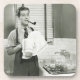 Homem que faz pratos de lavagem na cozinha, tubulação nos dentes, (marcas de B&W) | George | AssetID: 57539450