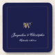 Presente de Casamento/Recém-Casados Conjunto de 6 Porta-Copos Personalizados com Monograma Inicial Moderno com Nomes do Noivo e da Noiva em Azul Marinho Chic. Rótulo clássico usado para o monograma da inicial do sobrenome, os nomes do noivo e da noiva e a data do casamento em um fundo azul marinho chic. O presente perfeito para recém-casados, casais noivos, um presente de casa nova ou lindo para a sua própria casa. Clique em personalizar este modelo para personalizá-lo com a inicial do monograma do sobrenome, nomes da Noiva e do Noivo e a data do casamento de forma rápida e fácil. Porta-Copos de Bebida Azul Marinho Chic com Monograma de Nomes para Presente de Casamento/Recém-Casados faz parte da Coleção Presentes de Casamento e para Recém-Casados nesta loja, que oferece uma bela gama de presentes personalizados e exclusivos para casamento. Toalha de bar ou cozinha monogramada correspondente, cobertor de fleece aconchegante e muitos outros itens na Coleção Presentes de Casamento e para Recém-Casados nesta loja. Garantia de Devolução de Dinheiro em 30 Dias. Envia para todo o