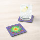 Porta copos Psicodélica de Arte Zen Mandala em verde limão, vermelho, roxo, azul e amarelo.