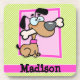 Cachorro de criança legal e colorido, com design branco, castanho, néon, cor-de-rosa quente no verde limão e listras brancas, padrão listrado. Presente perfeito para bebês, crianças, crianças, adolescentes ou adultos! Personalizado o modelo de design adicionando um nome de criança ou texto personalizado. Visite nossa loja, Festa de aniversário House, para mais excelentes de produtos femininos personalizáveis!