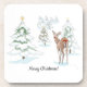 Esta montanha-russa de Natal ou bebidas de férias apresenta um desenho caprichoso de um veado caminhando através de uma floresta de pinheiros nevados. O veado está vestindo um nariz vermelho e algumas árvores estão decoradas. O texto da mensagem Feriado é totalmente personalizável para que você possa substituir a sua própria saudação ou adicionar seu nome. Arte original. Copyright Leah Wiedemer.
