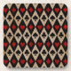 Corações vermelhos e diamantes e paus pretos e espadas sobre um fundo de formas de diamante pretas e bronzeadas. Verifique os travesseiros decorativos correspondentes!