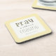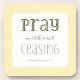 Porta copos com verso curto, mas poderoso, das escrituras de 1 Salónica 5:17, "Reze sem parar" numa fonte moderna de contador de histórias. Fundo amarelo; a palavra "Reze" acentuou-se com o mesmo amarelo.