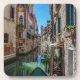Pintura de canal estreito com casas antigas e coloridas em Veneza, Itália. Gôndola tradicional no canal de água veneziano. Rua de canal estreito com edifícios coloridos e barcos em Veneza.